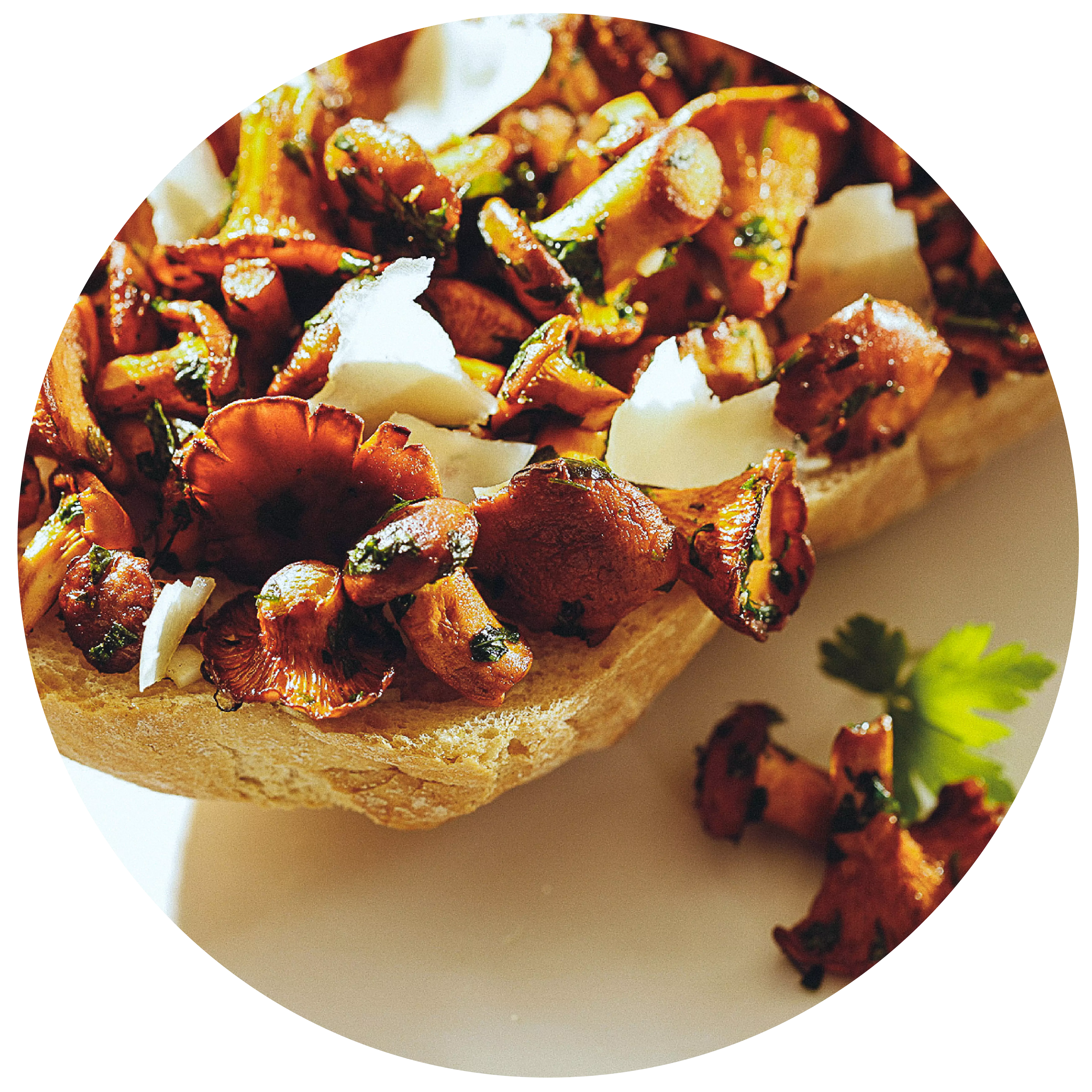Clean the chanterelles. Sauté the parsley in a pan with half of the oil, then add the mushrooms and cook over a low heat for approx. 5 minutes.